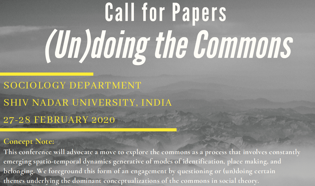 An interesting event for researchers focusing on the commons is (Un)doing the Commons , a two-day multi-disciplinary research conference, which will be held on 27-28 February 2020 at Shiv Nadar University in India. Read more on the conference and the call for papers here.